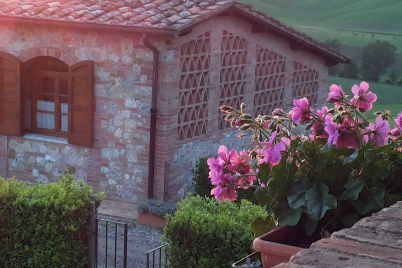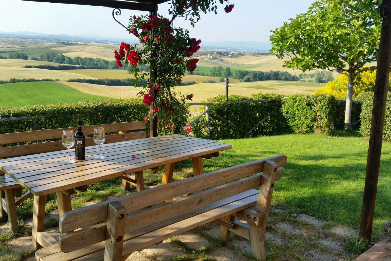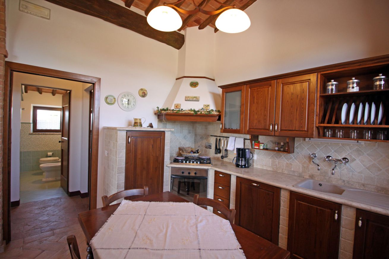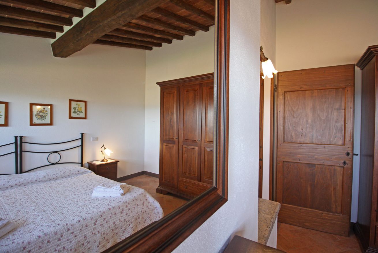 Capannina appartamento che si trova al pianoterra , al lato del podere ed è composto da un soggiorno con camino, una cucina con lavastoviglie, due camere una matrimoniale l'altra con due letti singoli e due bagni. All'esterno ha un giardino privato da dove poter ammirare lo splendido panorama e dove poter degustare gli ottimi prodotti toscani.